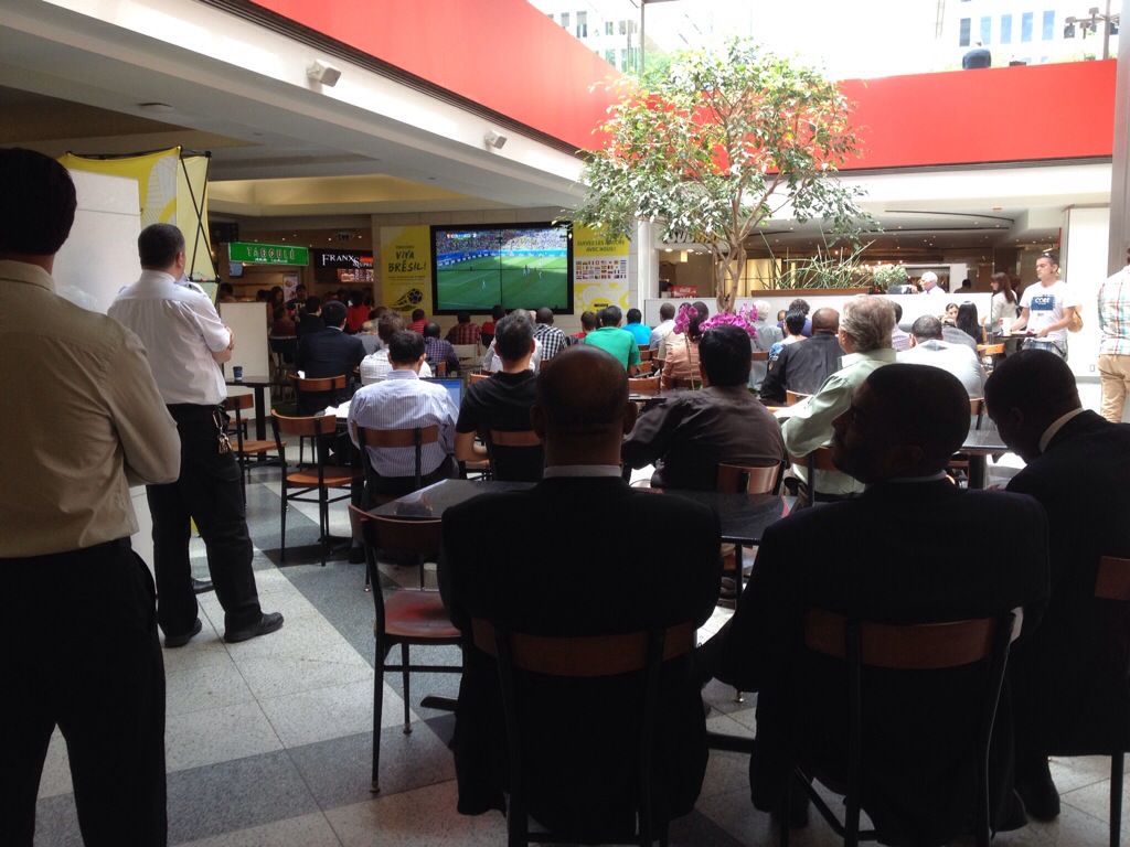 Today in downtown Montreal, people everywhere have left their desks to find a television in order to see the soccer game. And those who are at their desks are probably watching it online. We’re talking about all the men of course…